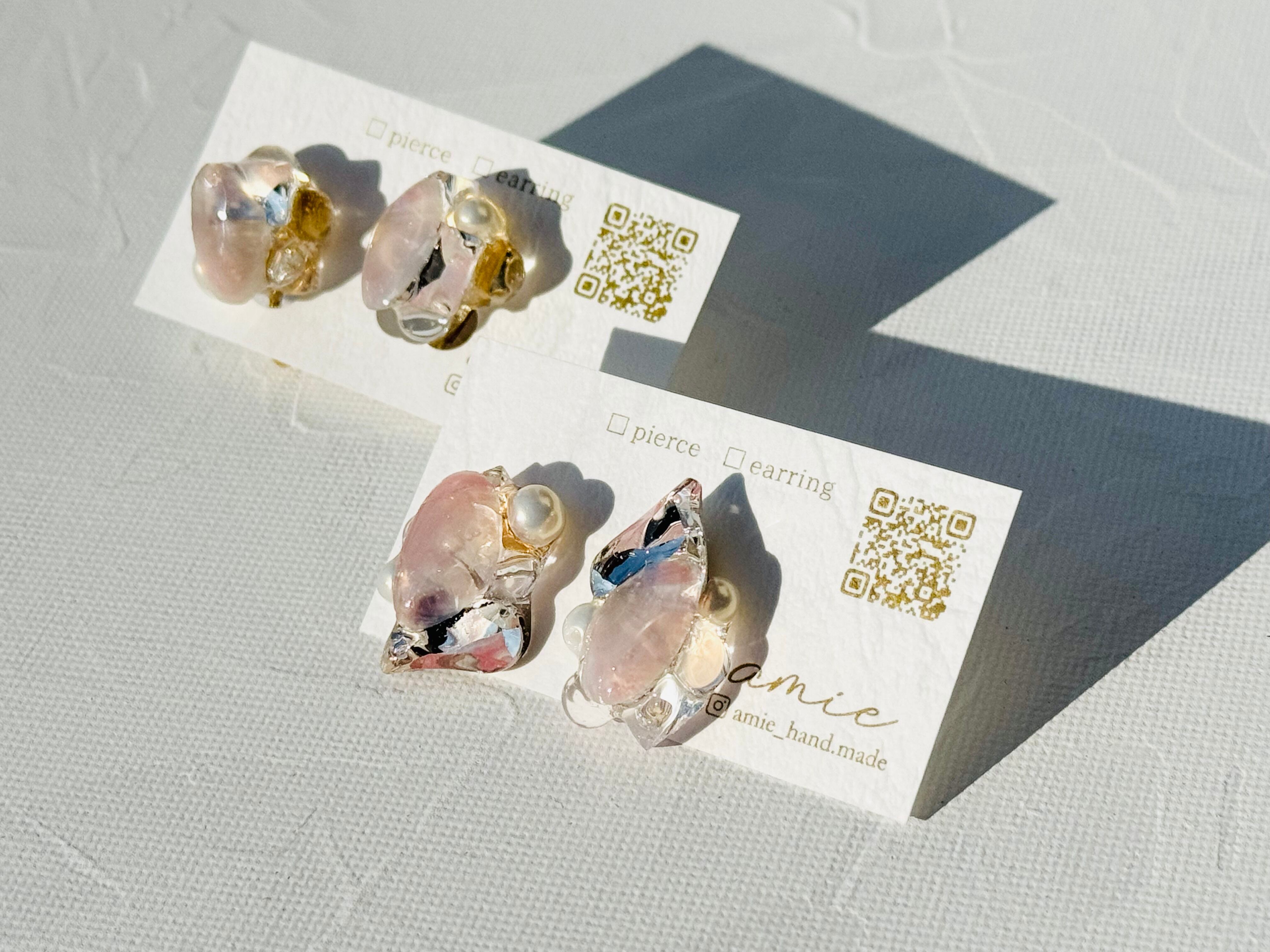 欠けのない厳選されたさくら貝とビジュー、パールを合わせたゴージャスなキラキラ耳飾り♡