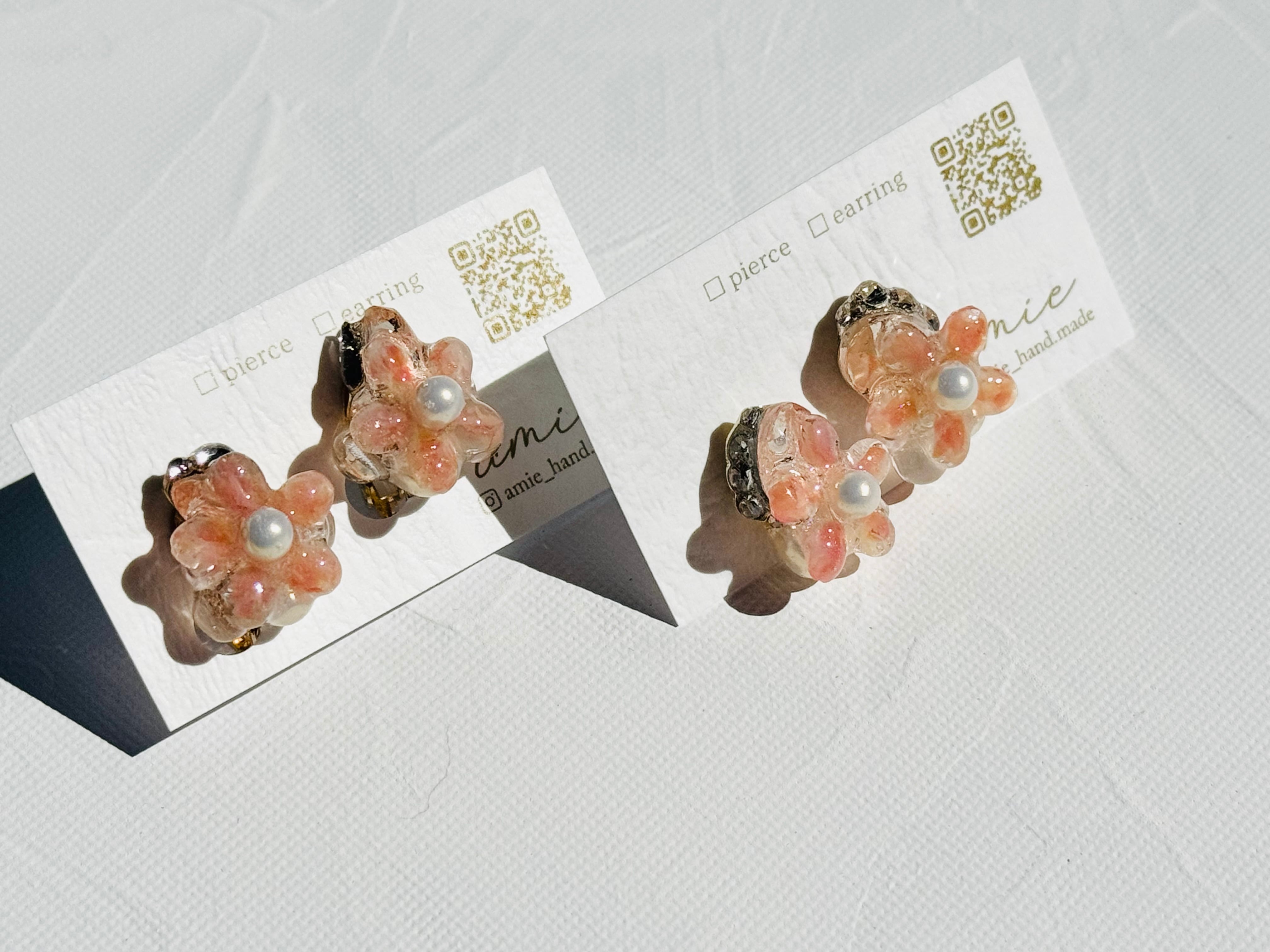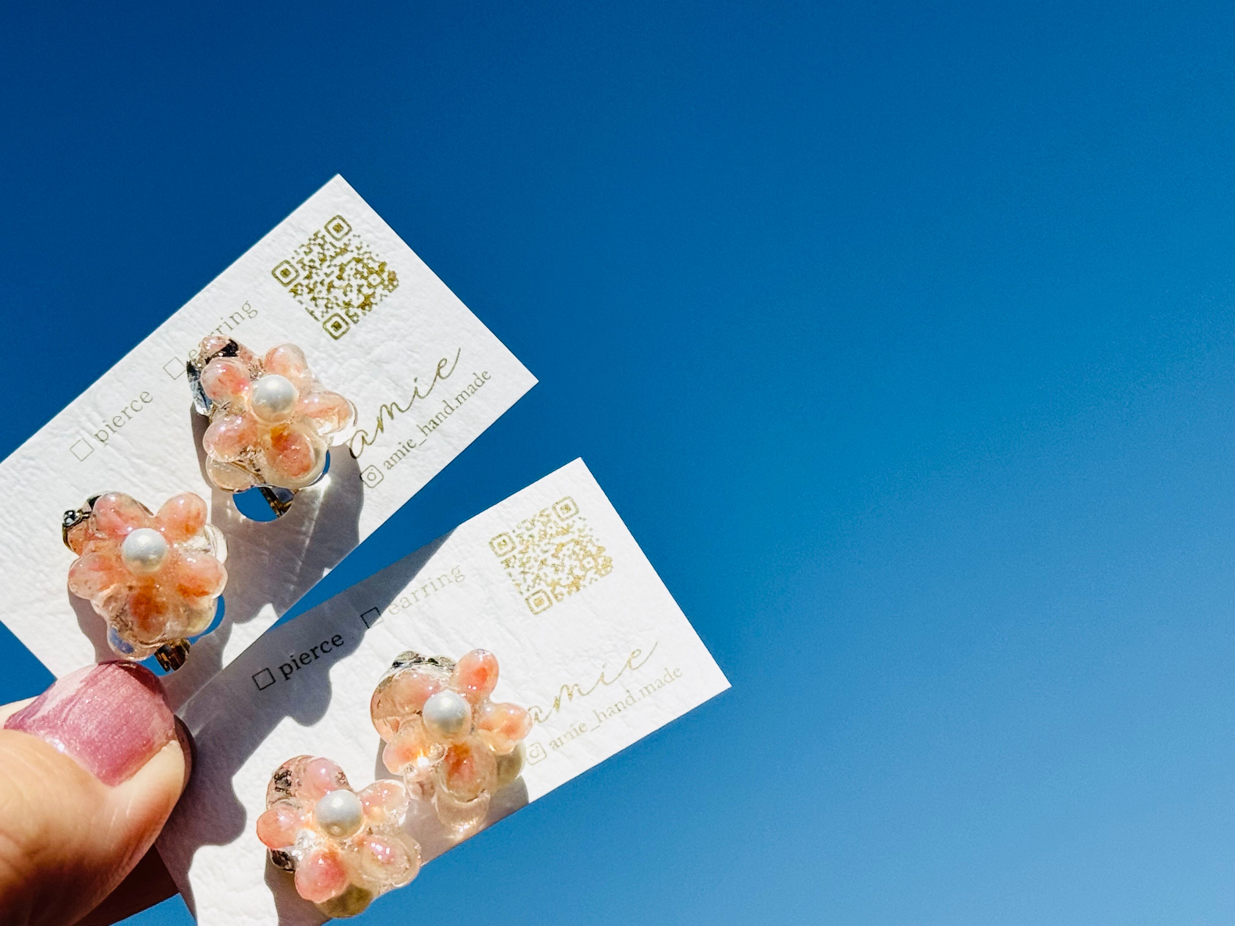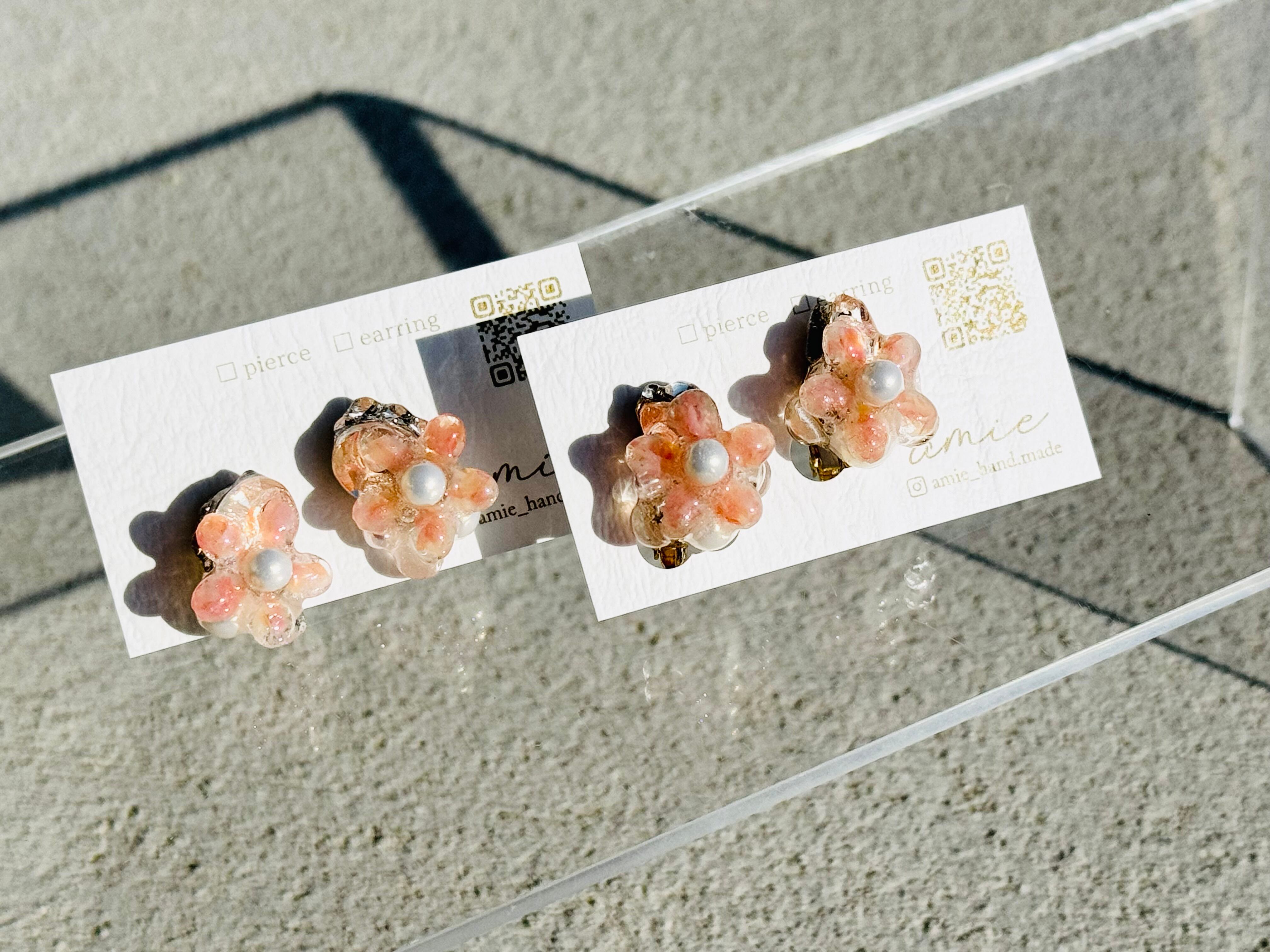 お花の形をしたさくら貝とビジューでお花好きにはたまらないデザイン.ᐟ.ᐟ