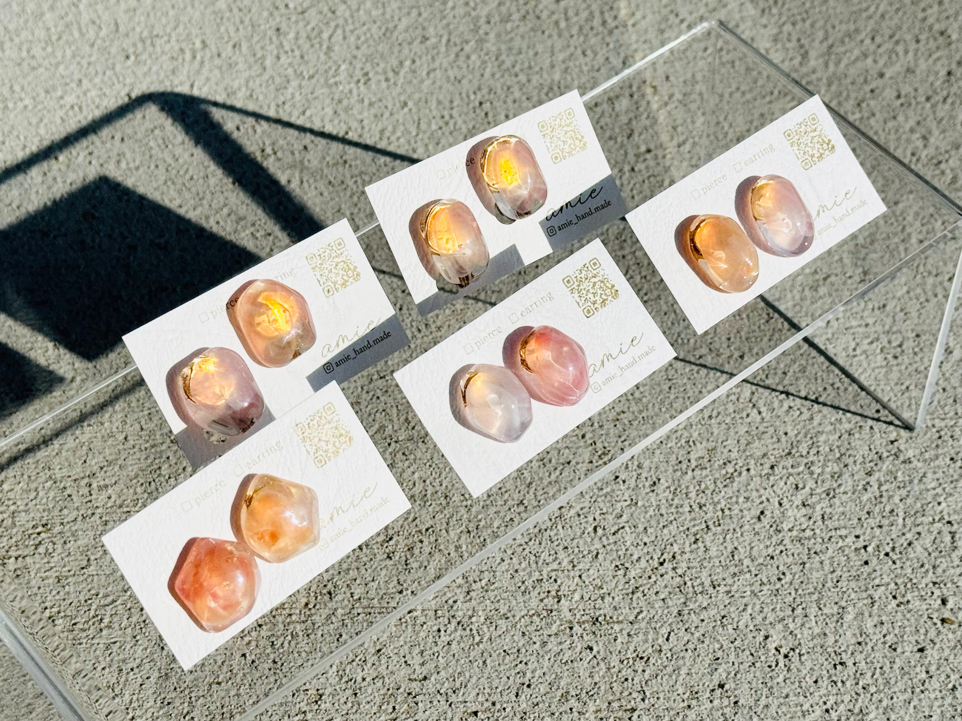 厳選されたさくら貝を2枚ずつ閉じ込めて、さくら貝の美しさをストレートに感じられるデザインです♪
