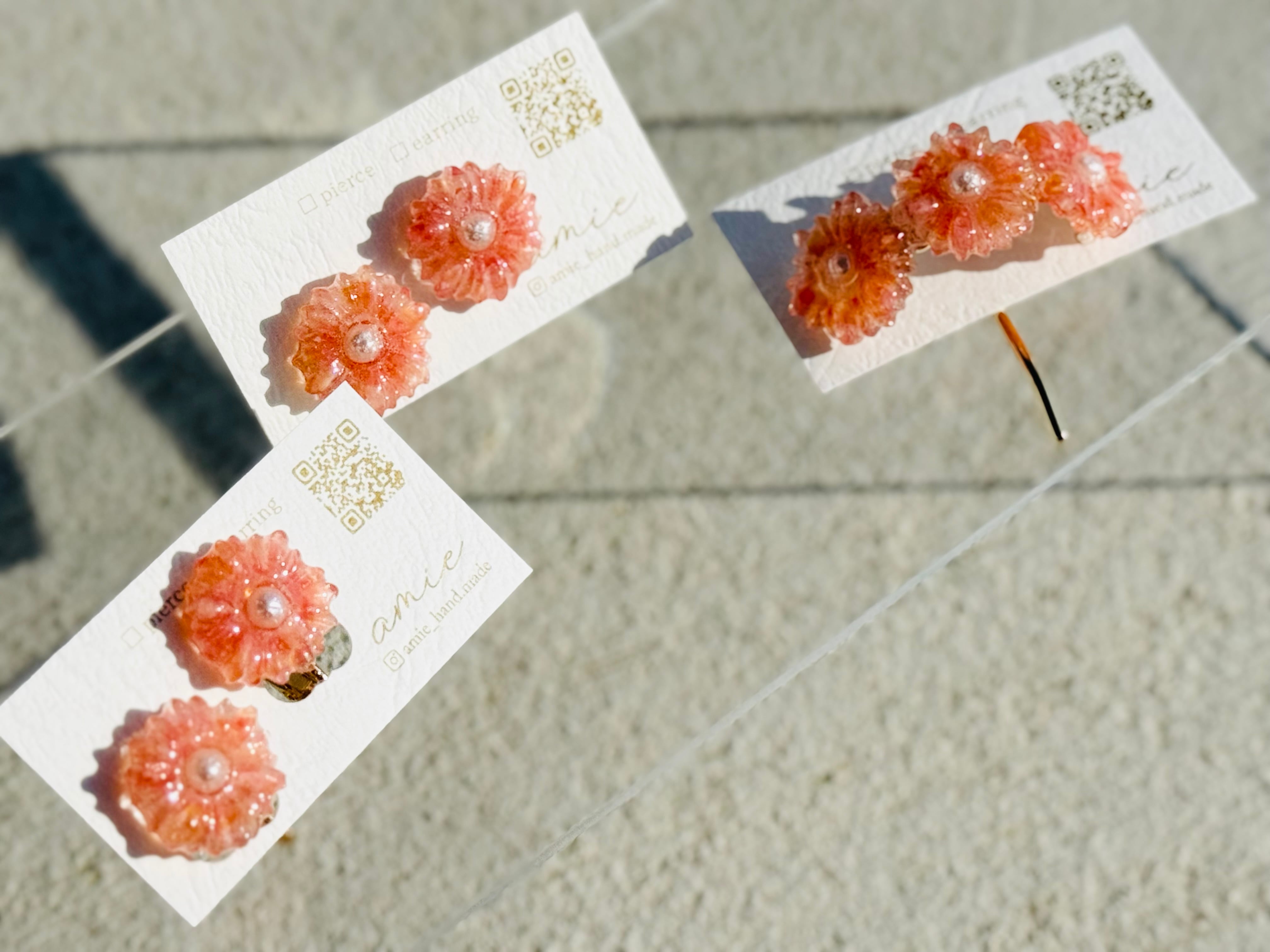 耳飾りだけではなく、お花冠を連想させるポニーフックも完成しました(*◡̈)